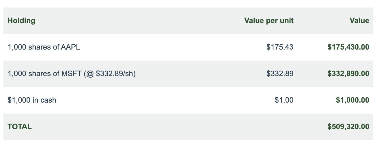 NAV = (Value of funds assets) / (number of outstanding shares)